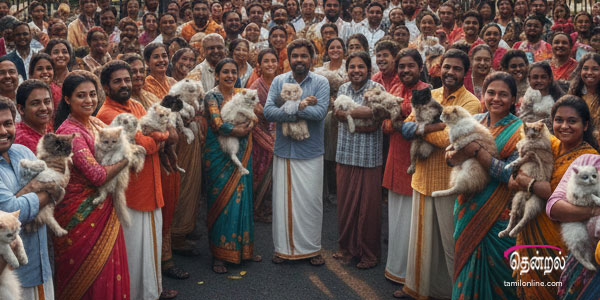 பிள்ளைவாள் பங்களாவின் வாசலில் ஒரு பெரும் கூட்டம். கூட்டத்தார் ஒவ்வொருவர் கையிலும் ஒரு பூனை. பிள்ளைவாள் அன்று காலை எழுந்ததும் எழுந்திருக்காததுமாக நூறு 'சில்லி'களின் முகத்தில் விழிக்கும் பாக்கியம் கிடைத்தது. நூறு ரூபாய் அற்ப சொல்பத் தொகையா? சுற்று வட்டாரத்தில் காணப்பட்ட பூனைக் குட்டிகள் பிள்ளைவாளின் வீட்டுக்குக் கொண்டு வரப்பட்டன. பூனைகளில் ஒன்றாவது வடிவாம்பாளின் அருமைச் 'சில்லி'யல்ல. இருந்தாலும் வந்த பூனைகளின் ஓலம் உள்ளத்தில் அடங்கியிருந்த தாயன்பைப் பொங்கி வழியச் செய்தது. வடிவாம்பாள் வந்த பூனைகளுக்குத் தாராளமாகப் பால் வழங்கினாள்.
