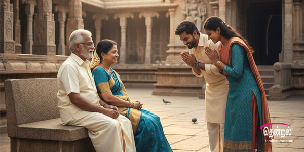அப்போது ஓர் இளம் தம்பதி வந்து சுந்தரேசன், அமுதா இருவர் கால்களிலும் சாஷ்டாங்கமாக விழுந்து வணங்கினார்கள். அவர்களை, மனமார வாழ்த்தி. "இருவரும் உங்கள் குழந்தைகளுடன் நீண்ட ஆயுள், உடல் நலம், மகிழ்ச்சியுடன் வாழ ஆசீர்வாதங்கள்" என்றார்கள்.