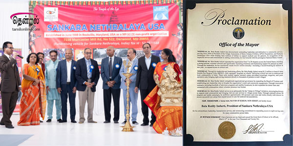சங்கர நேத்ராலயா USAவின் தலைவரான திரு. பாலா ரெட்டி இந்துர்த்தி, சிறப்பான தலைமைத்துவம் மனிதாபிமான சேவை ஆகியவற்றுக்காக நியூ ஜெர்சி மாநிலம் மற்றும் எடிசன் நகராட்சி ஆகியவற்றால் கௌரவிக்கப்பட்டார்.