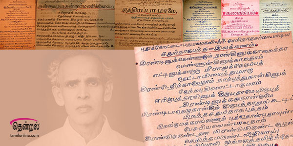 சுவாமிநாதன் தோத்திரக் கொத்து, வரத கணேச தோத்திரப் பாமாலை, துதிப்பாசுரத் தொகை, குன்றை மும்மணிக்கோவை, மயூர கிரி உலா, திருவேரகன் பதிகம், மால் அரன் மாலை மாற்று மாலை, புதுக்கோட்டை புவனேஸ்வரி அம்மன் துதிப்பாசுரத் தொகை, கல்லம்பட்டி முத்து மாரியம்மன் துதிப்பாசுரத் தொகை, தேனிமலை முருகன் துதிப்பாசுரத் தொகை, தேனிமலை முருகன் தோத்திரப் பாமாலை, சித்திரப்பாக் கோவை, மயூரகிரி மும்மணி மாலை, முருகன் மாலை மாற்று மாலை, கணக்கியல்