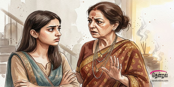முகத்தைக் கடுமையாக வைத்துக்கொண்டு வினோத்தை வெறுப்புடன் பார்க்கும் தாய் அம்புஜத்தின் முகம் அவள் கண்முன் தோன்றி மறைந்தது.