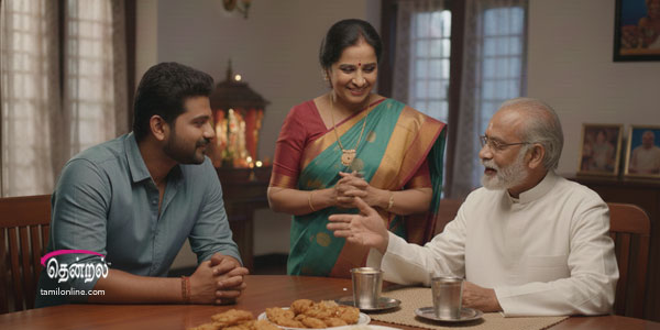 "மாலை 5 மணிக்கு வருகிறான். அமெரிக்காவிலிருந்து மதியம் 1 மணிக்கு விமானம் சென்னை வருகிறது. அங்கிருந்து டாக்ஸி பிடித்து நம்ம வீட்டிற்கு வர மாலை 5 மணியாகும் என்று நேற்று ஃபோனில் சொன்னான்" என்றார் சுந்தரேசன். அருகில் சந்தோஷப் புன்னகையுடன் அவர் மனைவி பத்மா நின்றிருந்தாள்.